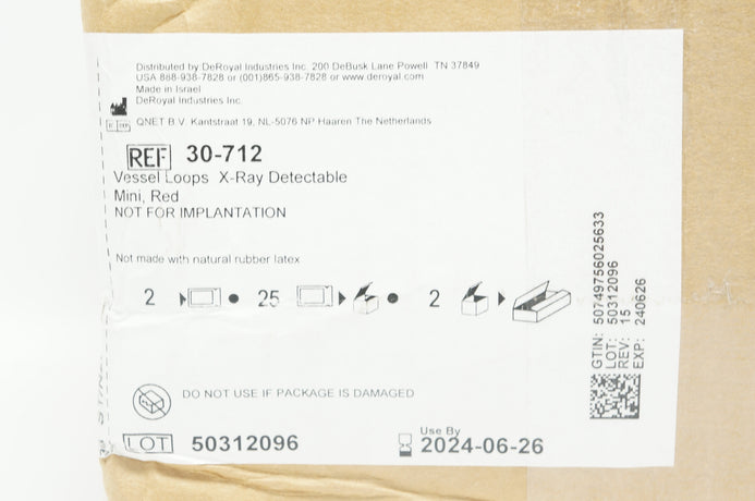 - DeRoyal 30-712 Vessel Loops X-Ray Detectable Mini, Red - Case of 25