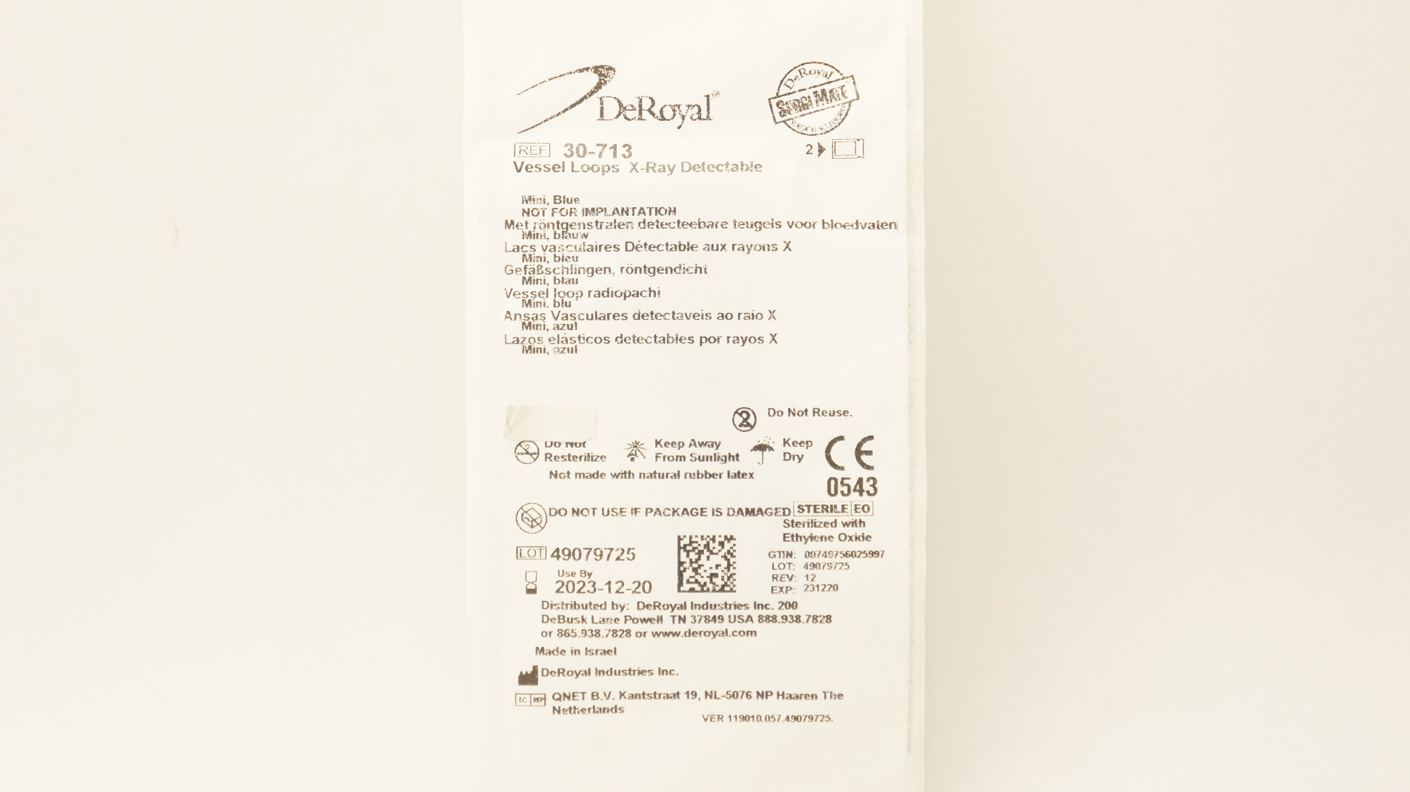 - DeRoyal 30-713 2 Vessel loops X-Ray Detectable