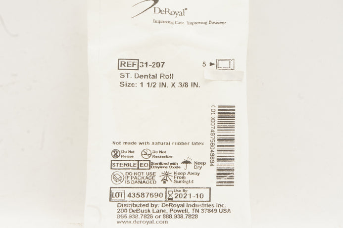 - DeRoyal 31-207 ST Dental Roll, Size 1 1/2 inch x 3/8 inch - Pack of 5