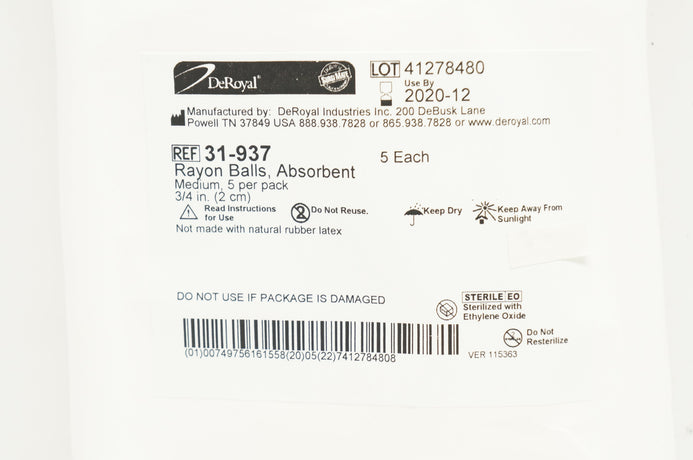 - DeRoyal 31-937 Rayon Balls, Absorbent, Medium 3/4inch (x) - Pack of 5