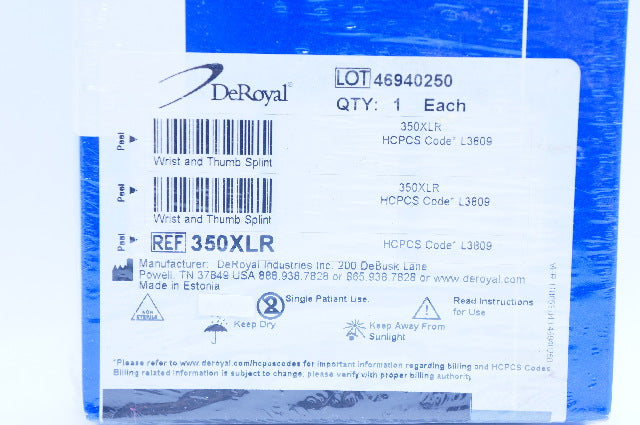 - DeRoyal 350XLR Wrist and Thumb Splint Tritex X-Large 8inch, Right