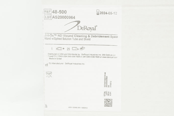 - DeRoyal 48-500 Jet-Ox-ND Wound Cleaning & Debridement System - Box of 25
