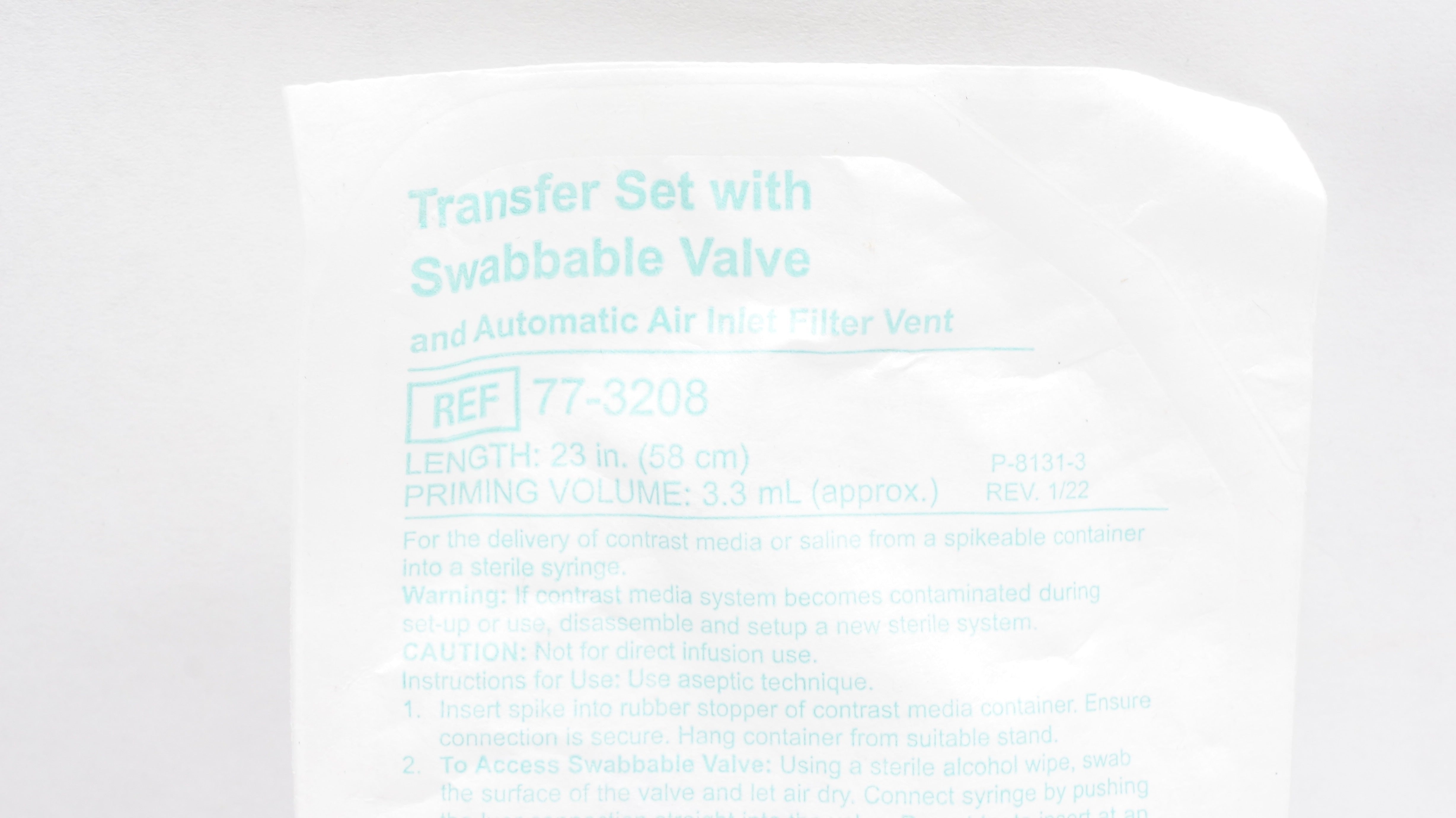 - Deroyal 77-3208 Transfer Set w/ Swabbable Valve, 23inch