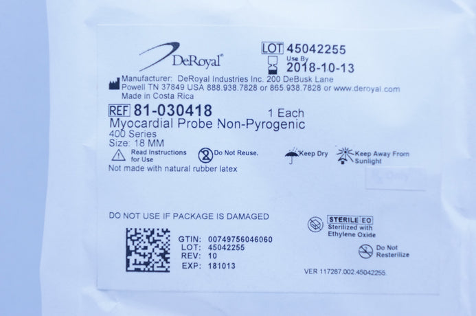 - DeRoyal 81-030418 Myocardial Probe Non-Pyrogenic 400 Series, Size 18mm (x)