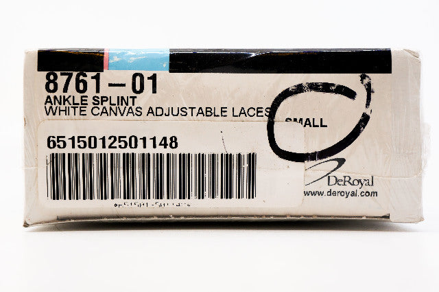 - DeRoyal 8761-01 Ankle Splint White Canvas Adjustable Laces Small