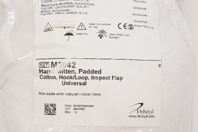 DeRoyal M2042 Hand Mitten Padded Cotton Hook/Loop Inspect Flap Universal