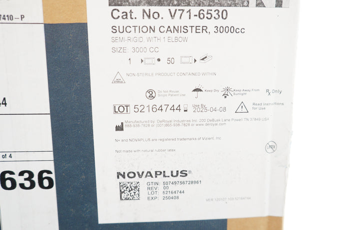 - DeRoyal V71-6530 Novaplus Suction Canister 3000cc - Case of 50