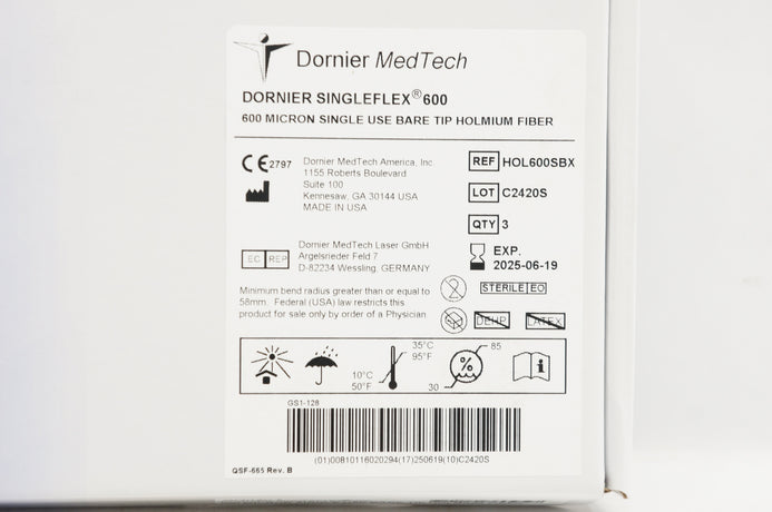 - Dornier HOL600SBX SingleFlex 600 Bare Tip Holmium Fiber - Box of 3