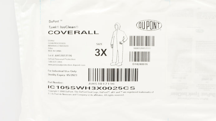 - DuPont IC105SWH3X0025CS Tyvek IsoClean Coverall, Sterile Size 3X (x)