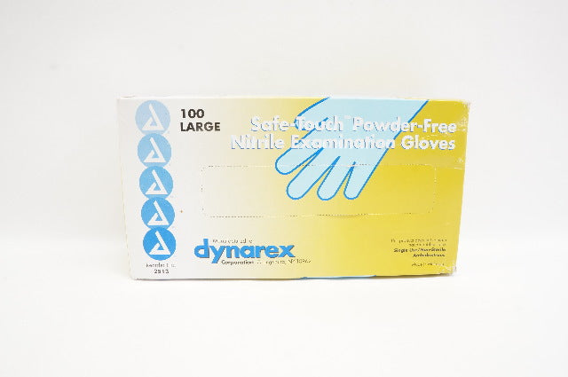 Dynarex 2513 Safe-Touch Nitrile Examination Gloves Powder-Free Large -Box of 100