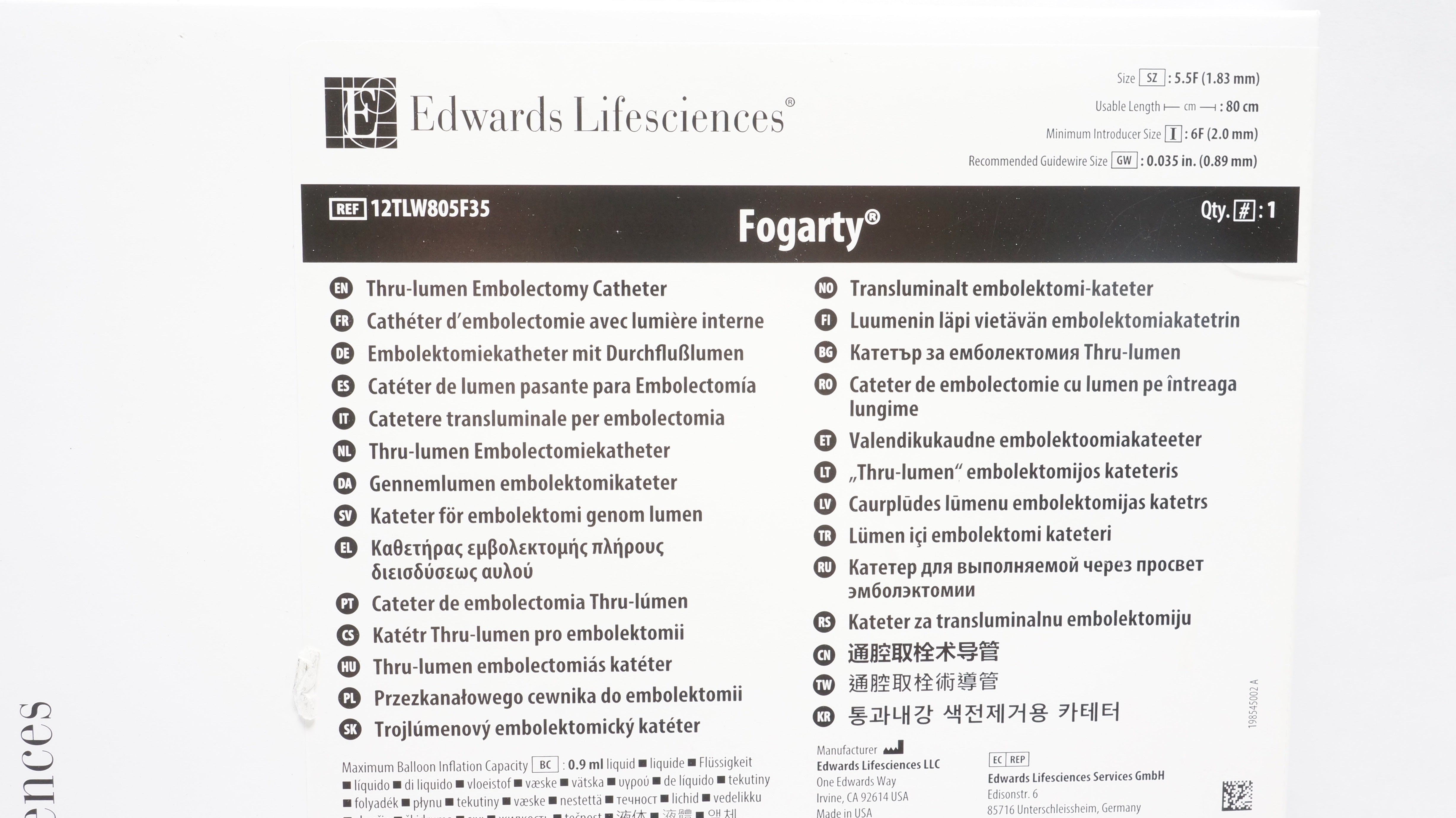 - Edwards Lifesciences 12TLW805F35 Fogarty Thru-Lumen Embolectomy Cath. 5.5F (x)