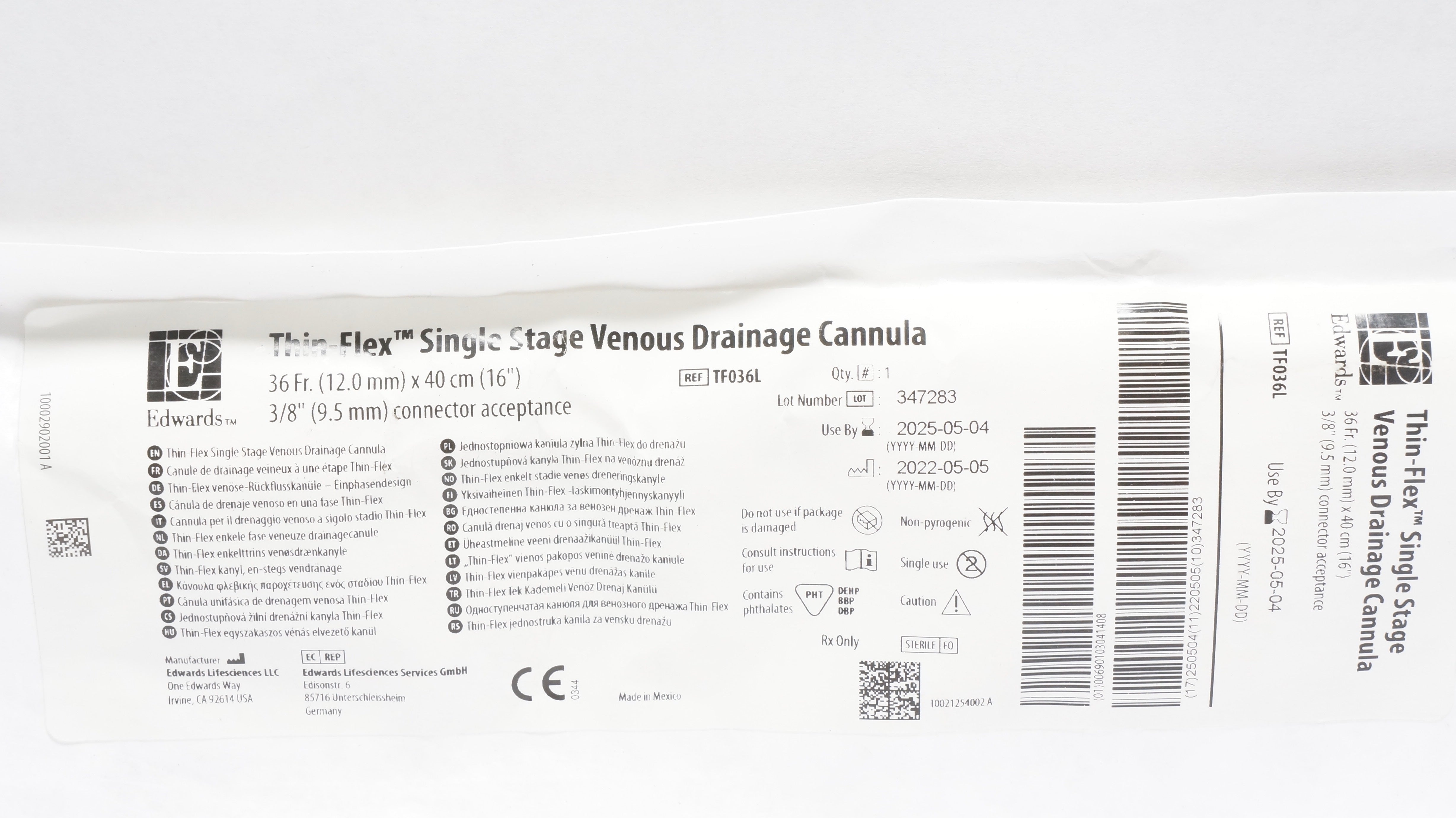 - Edwards Lifesciences TF036L90 Thin-Flex Single Stage Venous Cannula 36Fx40cm (x)