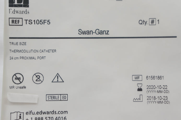 - Edwards TS105F5 Swan-Ganz Thermodilution Cath. 24cm Proximal Port 5F x 100cm