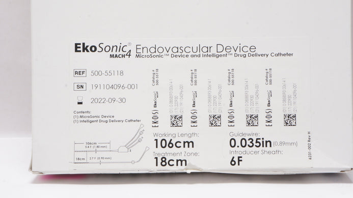 - Ekos 500-55118 EkoSonic Match 4 Endovascular Device 6F 106cm 18cm 0.035inch (x)