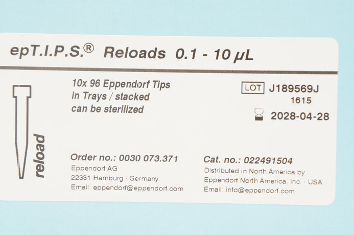 - Eppendorf 022491504 epT.I.P.S Reloads 0.1-10µL, 10 x 96 Tips In Trays