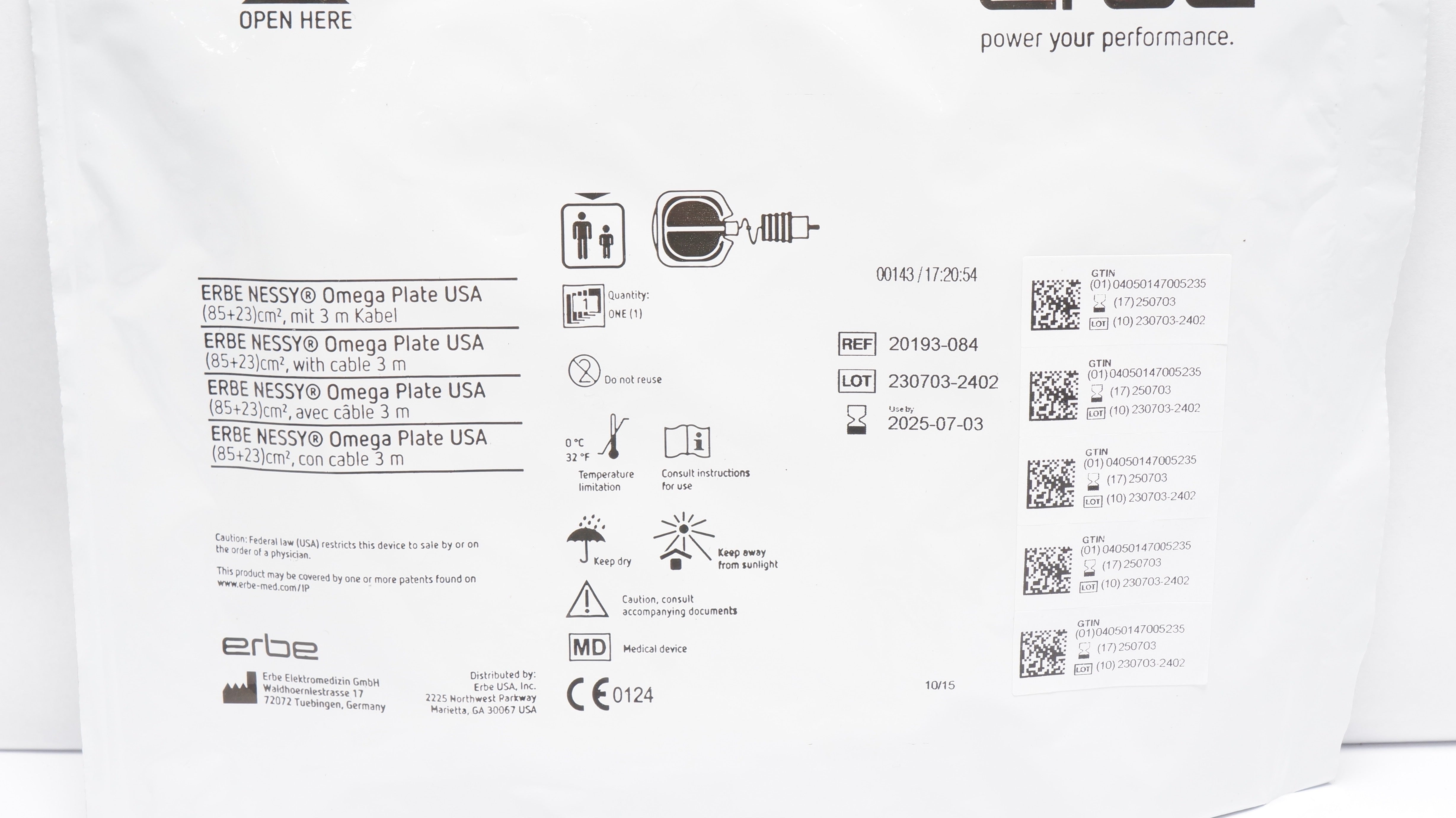 Erbe 20193-084 Nessy Omega Plate USA (85+23)cm² with Cable 3m (x)