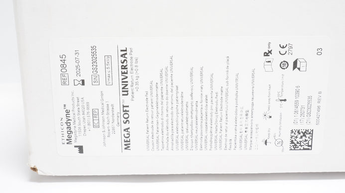 - Ethicon 0845 Megadyne Mega Soft Universal Patient Return Electrode Pad >0.8ibs(x)