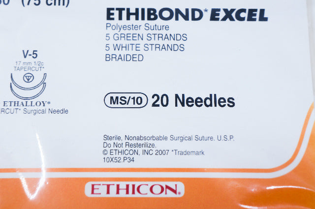 - Ethicon 10X52 2-0 Ethibond Excel, V-5, 17mm 1/2c TaperCut, 30inch (x)