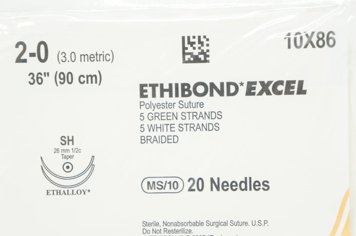 - Ethicon 10X86 2-0 Ethibond Excel Polyester Stre SH 26mm 1/2c Taper 36inch (x)