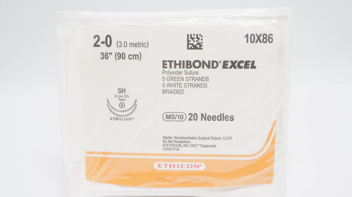 - Ethicon 10X86 2-0 Ethibond Excel Polyester Stre SH 26mm 1/2c Taper 36inch (x)