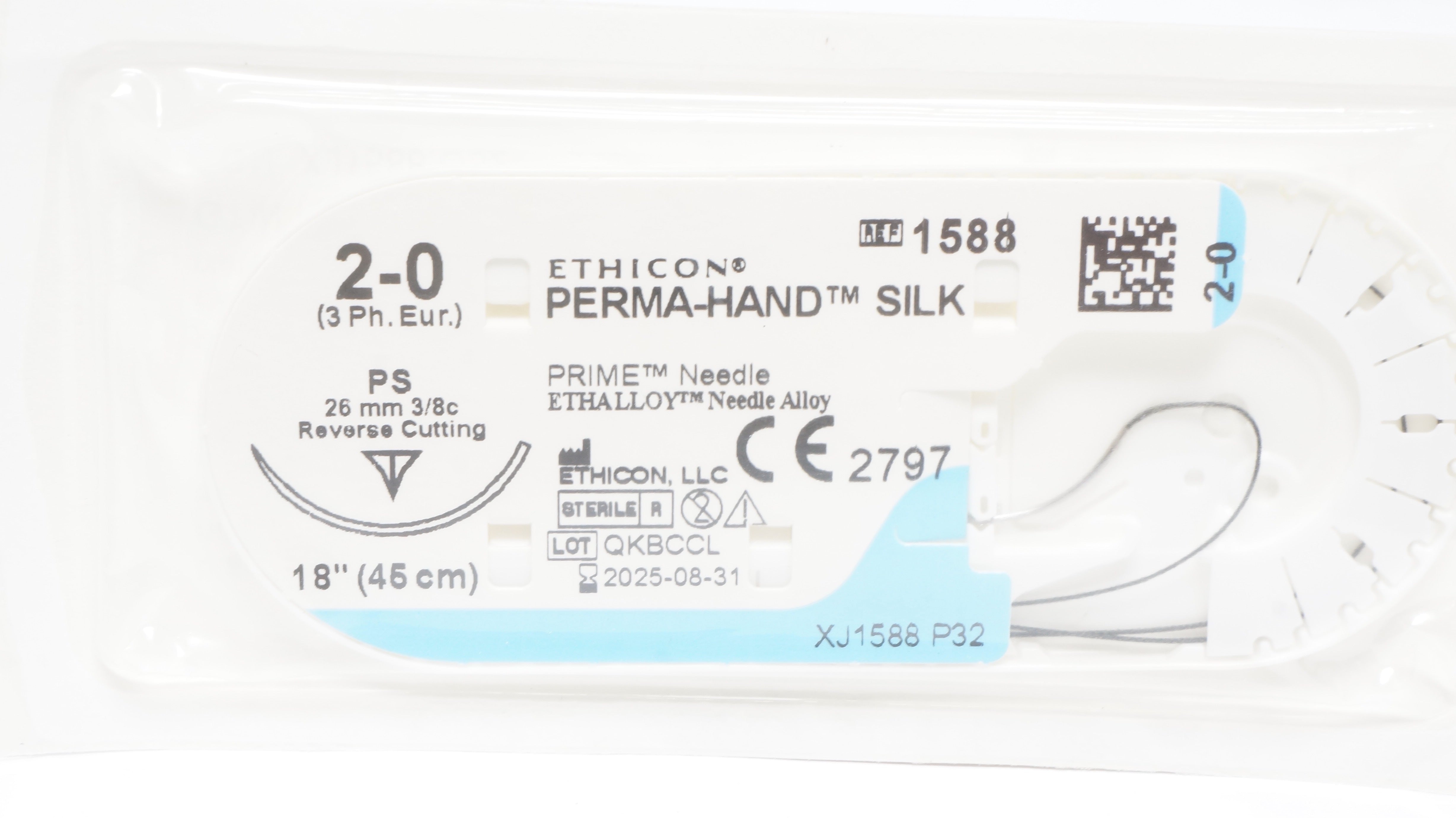 - Ethicon 1588 2-0 PERMA-HAND SILK PS, 26mm 3/8c Reverse Cutting, 18inch (x)