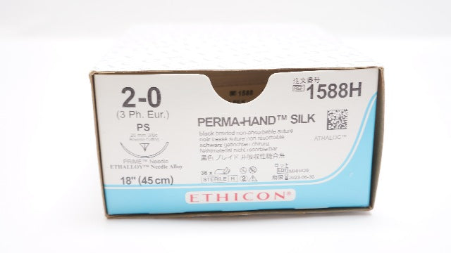- Ethicon 1588H 2-0 PERMA-HAND SILK PS 26mm 3/8c Reverse Cutting,18in(x)-Box of 24