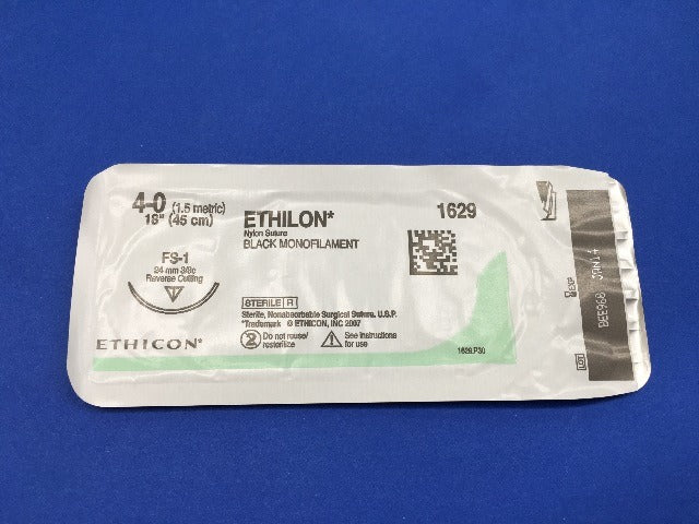 Ethicon 1629H ETHILON, Reverse Cutting, Non-Absorbable, FS-1 24mm 3/8 Circle, Black Monofilament 18" 45cm, Size: 4-0