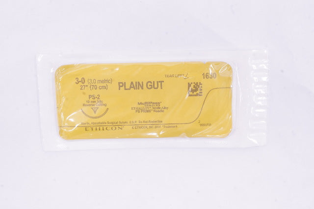 - Ethicon 1630 3-0 Plain Gut PS-2 19mm 3/8c Reverse Cutting, 27inch