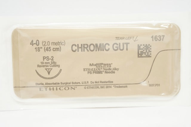 - Ethicon 1637 4-0 CHROMIC GUT Stre PS-2 19mm 3/8c Reverse Cutting 18inch (x)