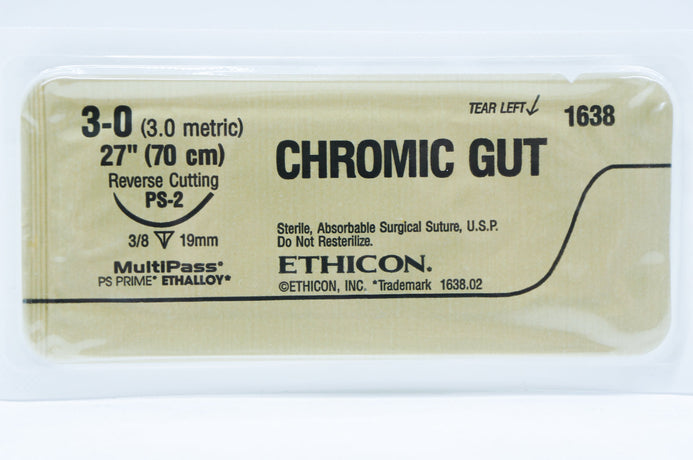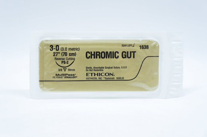 Ethicon 1638 3-0 CHROMIC GUT, PS-2, 3/8 19mm, 27inch
