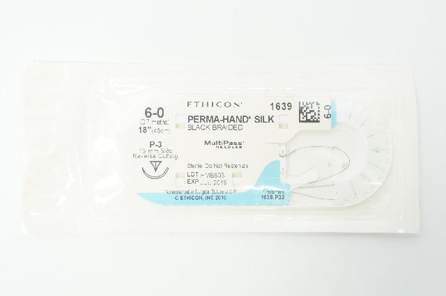 Ethicon 1639 6-0 PERMA-HAND SILK, P-3, 13mm 3/8c Reverse Cutting, 18inch (x)