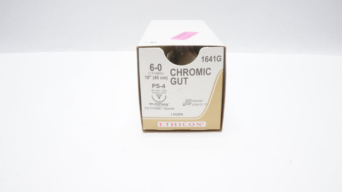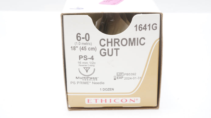 - Ethicon 1641G 6-0 Chromic Gut PS-4 16mm 1/2c Reverse Cutting 18inch (x)-Box of 6