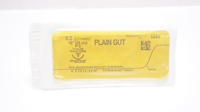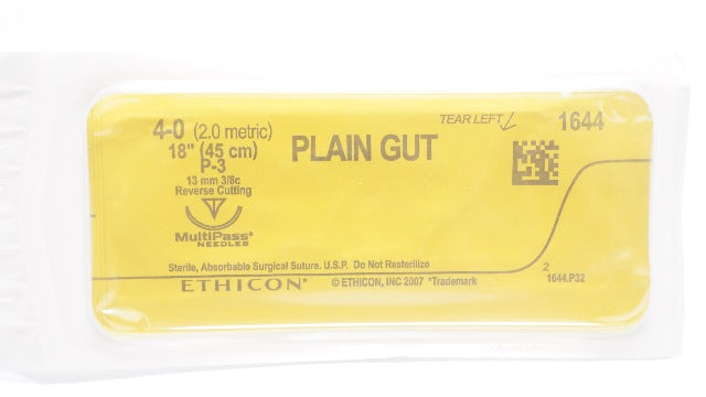 Ethicon 1644 4-0 PLAIN GUT Surgical Suture P-3 13mm 3/8c Reverse Cutting 18inch