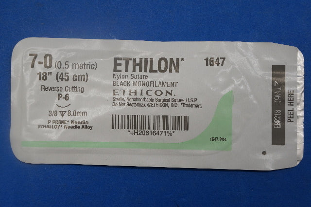 - Ethicon 1647 7-0 ETHILON, P-6 Reverse Cutting, Black Monofilament, 18