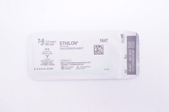 - Ethicon 1647 7-0 Ethilon Stre P-6 8.0mm 1/4c Reverse Cutting 18inch (x)