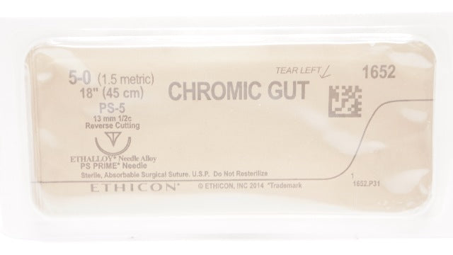 Ethicon 1652 5-0 CHROMIC GUT, PS-5, 13mm 1/2 Reverse Cutting, 18inch