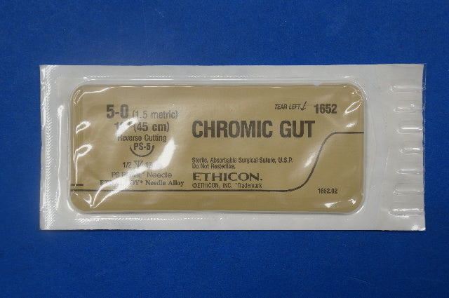 - Ethicon 1652G 5-0 CHROMIC GUT, PS-5 13mm 1/2 Reverse Cutting, 18 -Box of 12