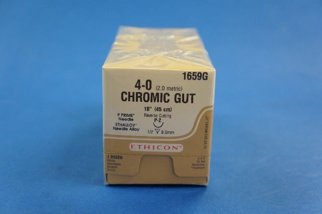 Ethicon 1659G Gut Chromic, Precision Point - Reverse Cut, P-2, 18", Size 4-0