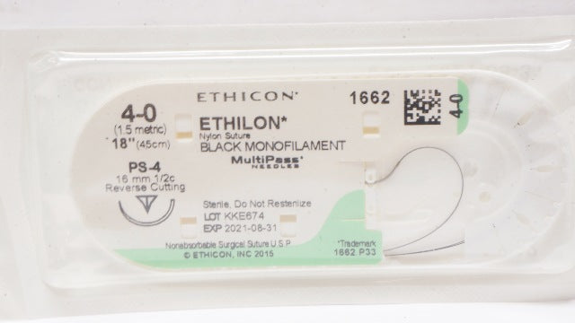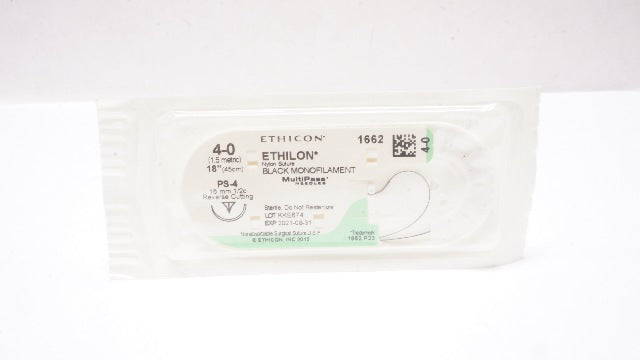 Ethicon 1662 4-0 Ethilon Nylon Stre. PS-4 16mm 1/2c Reverse Cutting 18In