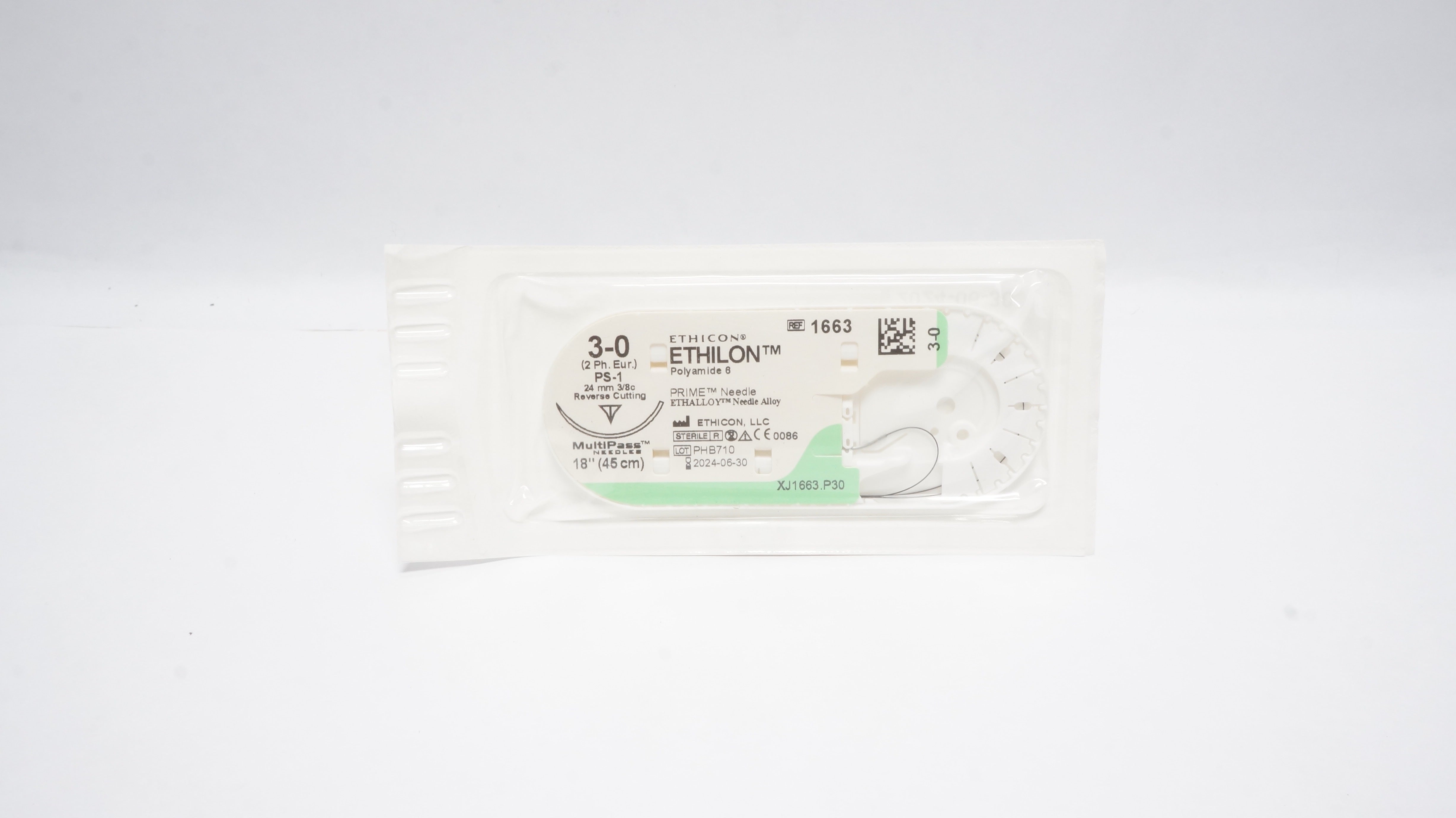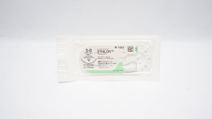 - Ethicon 1663 3-0 Ethilon Nylon Stre PS-1 24 mm 3/8c Reverse Cutting 18 inch (x)