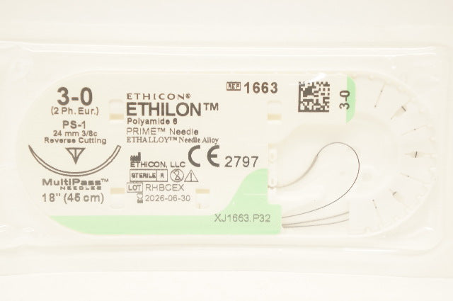 Ethicon 1663 3-0 Ethilon Polyamide6 Stre PS-1 24 mm 3/8c Reverse Cutting 18 inch