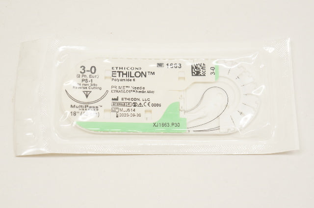 - Ethicon 1663 3-0 ETHILON, PS-1, 24mm 3/8c Reverse Cutting, 18inch