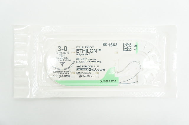 - Ethicon 1663 3-0 ETHILON, PS-1, 24mm 3/8c Reverse Cutting, 18inch (x)
