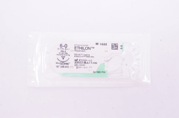 Ethicon 1665 6-0 Ethilon Polyamide 6 Stre PS-3 16mm 3/8c Reverse Cutting 18inch