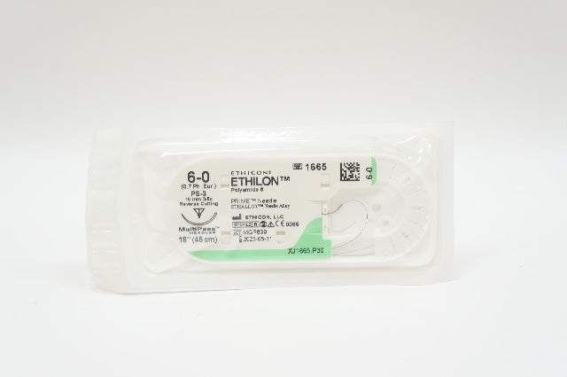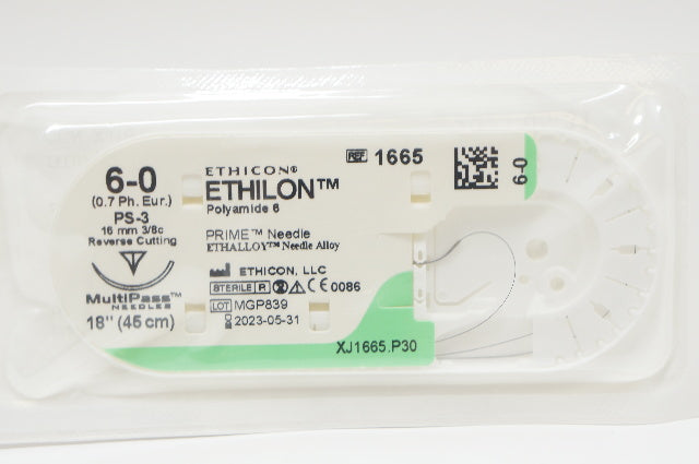 Ethicon 1665 6-0 ETHILON, PS-3, 16mm 3/8c Reverse Cutting, 18inch