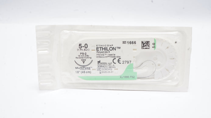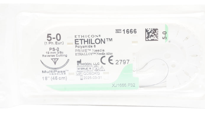- Ethicon 1666 5-0 ETHILON, PS-2, 19mm 3/8c Reverse Cutting, 18inch