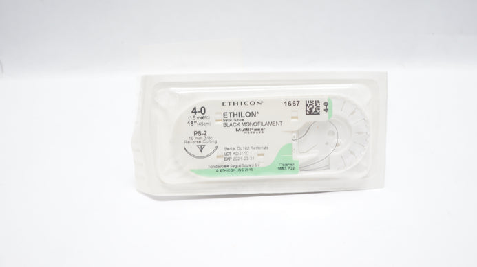 - Ethicon 1667 4-0 Ethilon Nylon Stre PS-2 19mm 3/8c Reverse Cutting, 18 inch (x)