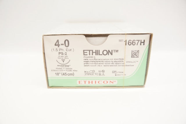 Ethicon 1667H 4-0 ETHILON PS-2 19mm 3/8c 18inch - Box of 36 (x)