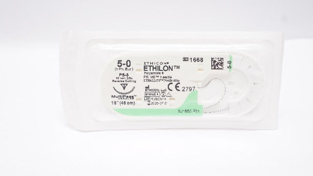 Ethicon 1668 5-0 ETHILON Nylon Stre PS-3 16mm 3/8c Reverse Cutting, 18inch