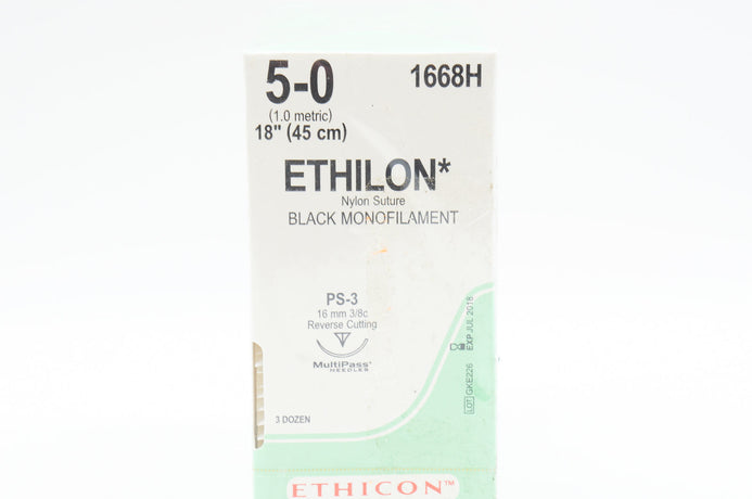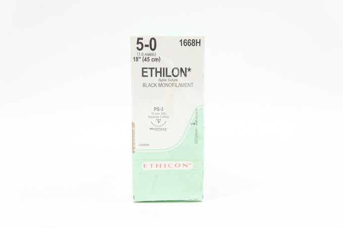 Ethicon 1668H 5-0 ETHILON, PS-3, 16mm 3/8c, 18inch (x) - Box of 36